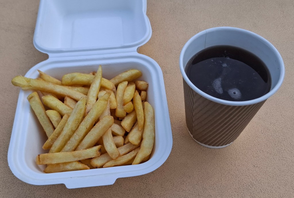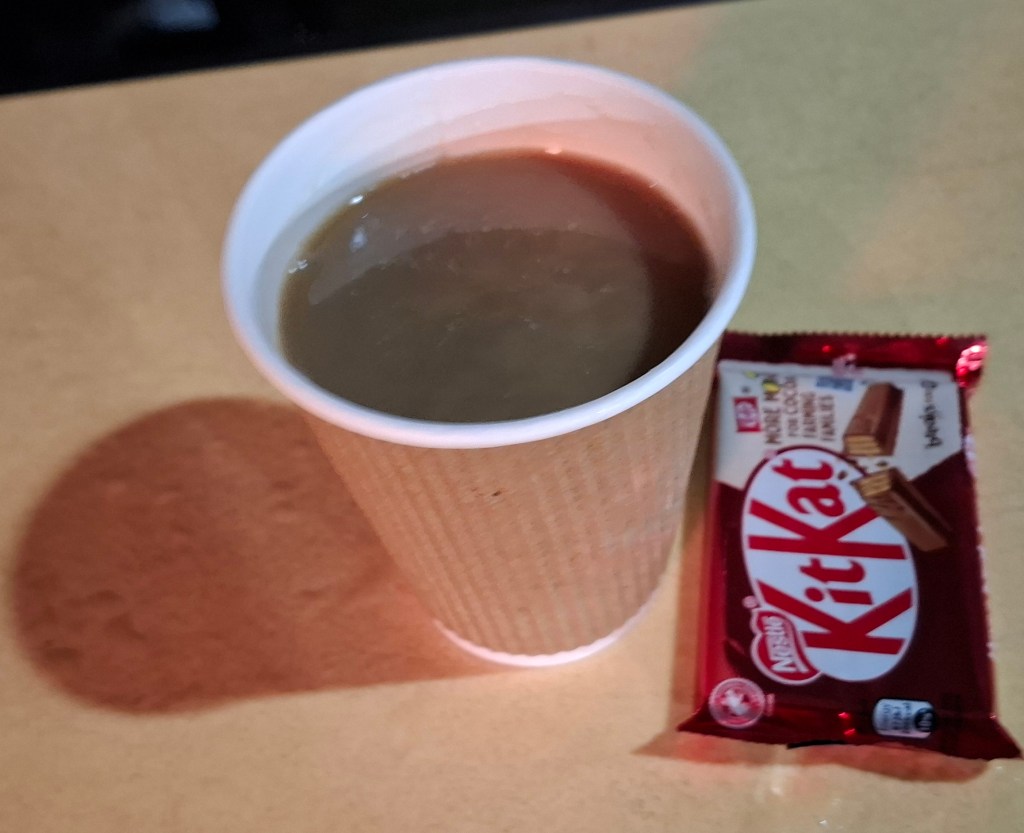 Although chips were available I had scored them on Saturday, and decided on just a KitKat and a coffee.