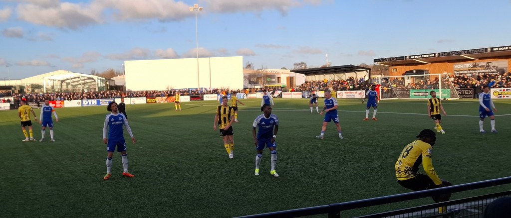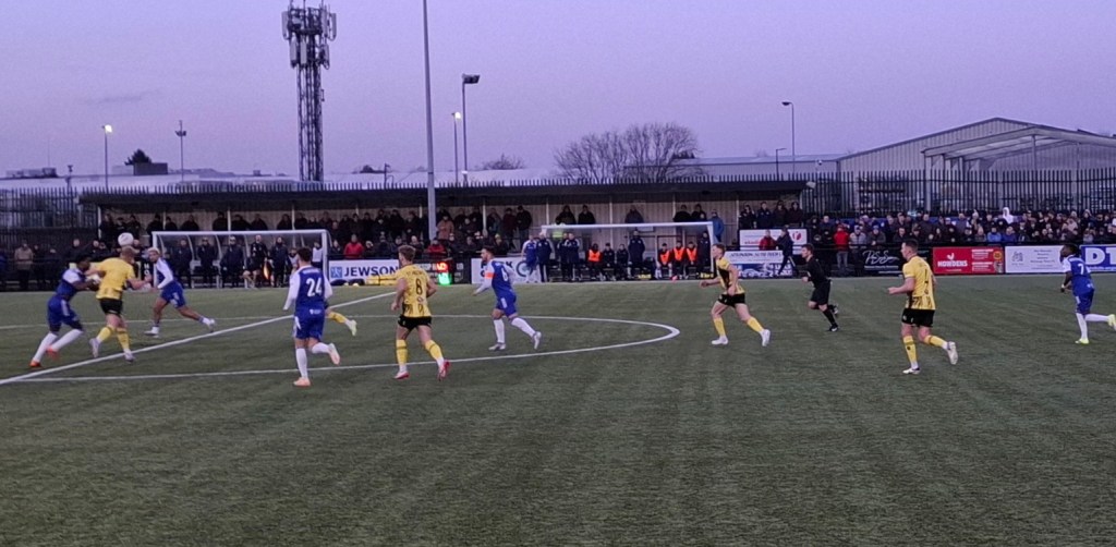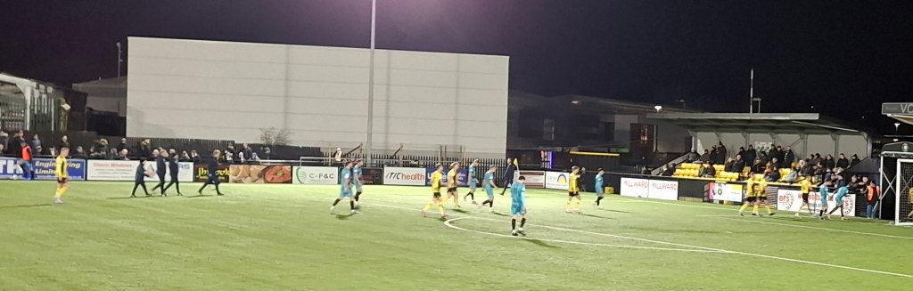 It was lucky the game was on, with others being postponed because of the havoc left by storm Chandra, particularly in the South West of England. The torrential rain had cleared leaving a clear night with the temperature at 5 degrees and dropping. The alweather pitch had drained very well, but the centre looked to have some minor surface water.