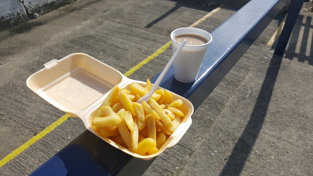 I was excited to find Big Fellas Snack Bar and find chips on the menu. Unfortunately although hot they were a bit soggy and lacked taste. Good value and quantity but dropping half was not a disappointment. A score of only 53 to start the season.
