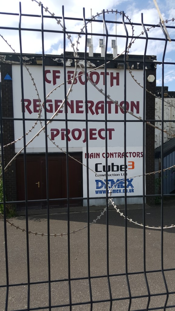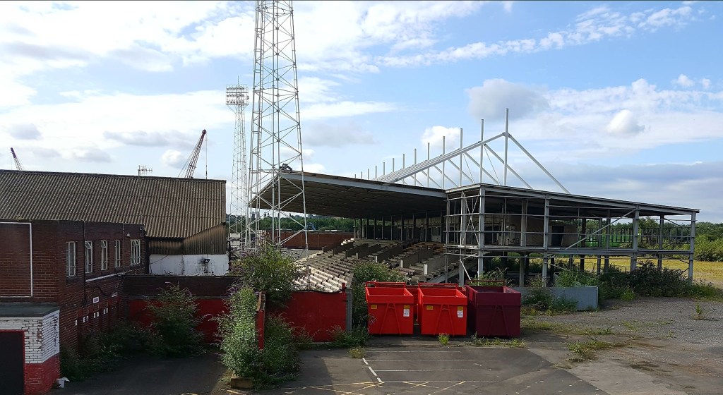 The old ground is now well protected by razor wire, a dense undergrowth in places and a security company whose van was parked within the confines. Very sad to see but the progress that has been made at the new ground was worth it. Walking down one side of the old ground you can smell that oilly metal smell of engineering and you can hear the sound of scrap metal being processed.