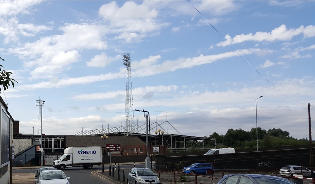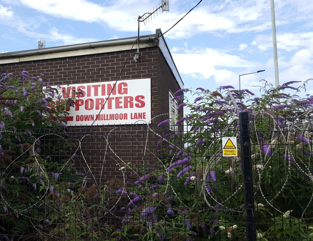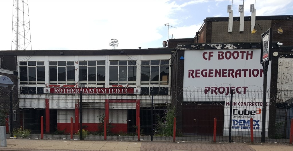 Millmoor was used by a youth team playing Sunday football for a time but now sits an eerie empty place with the new main stand never completed. The grass looked cut and very green from a distance but the advertised redevelopment seems stalled. Millmoor was an Athletics Stadium and I believe I have read that there is a long standing covenant on the ground that prevents it from being anything else for some time to come.