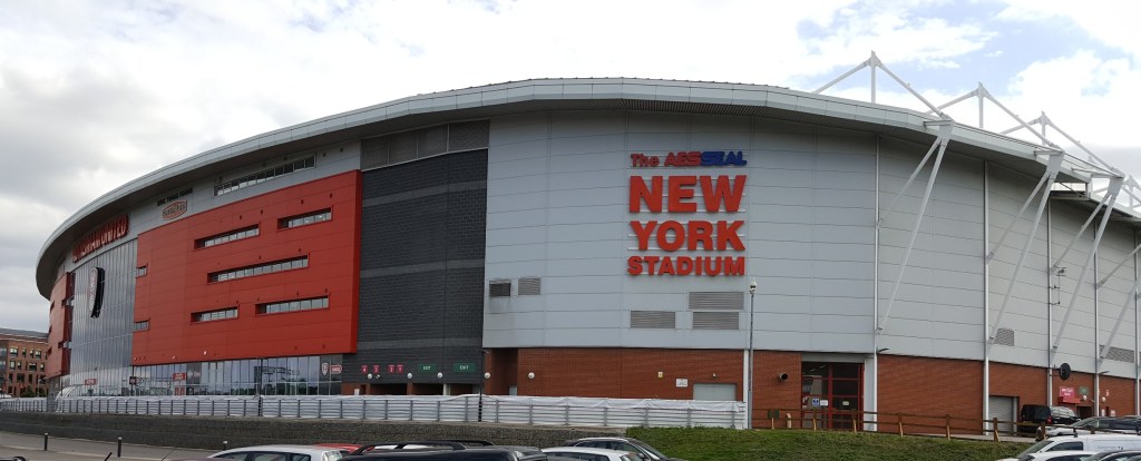 I recently had some time to kill in Sheffield and decided to drive to Rothetham. When you travel through the road system in Rotherham centre you drive along Centenary Way over the river Don bridge and your eye is immediately drawn to the Millers home, The New York Stadium which dominates the view as much for its modernism and brightness in an industrial landscape that has served the employment prospects of locals for a long time. New York because of the area’s name not because it is homage to a far larger Trans Atlantic metropolis. This is one of the new concrete homes to many football clubs that are slowly replacing outdated stadia originally implemented with the rightfull move to safety and more or all seater grounds. In my view Rotherham is one of the most successfulI Community Stadia, I always feel at home there and get a good view and feel for the game. Yes we have lost some of the history and the atmosphere but when we look back was steep terracing, tobacco smoke and urine where we want to be.