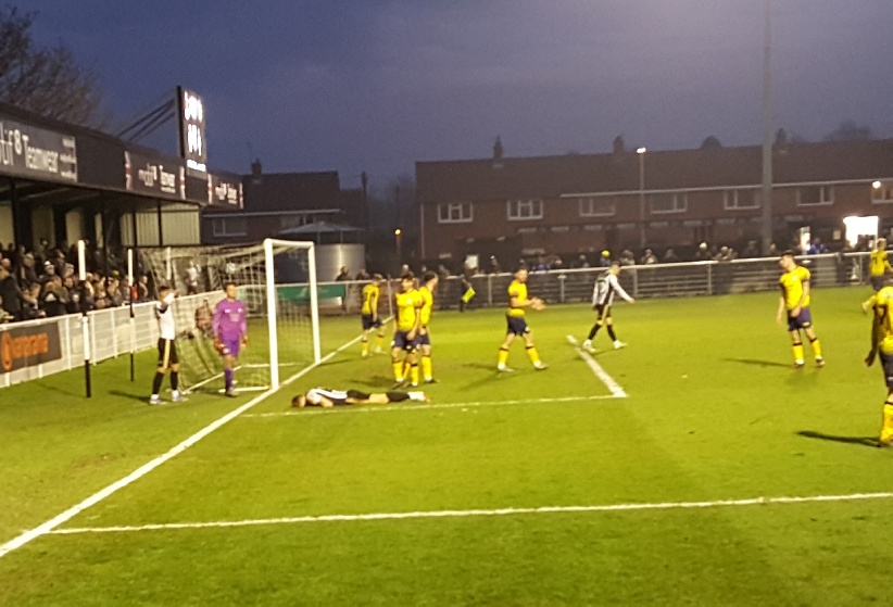 With a few home supporters drifting away and towards the exit Luke Spokes latched onto a ball from a corner and was able to slot it home through a group of players to draw the teams level. Just three minutes later on 87 minutes the same happened again when from another corner Rob Ramshaw tapped home to send the players and home fans into delirium.