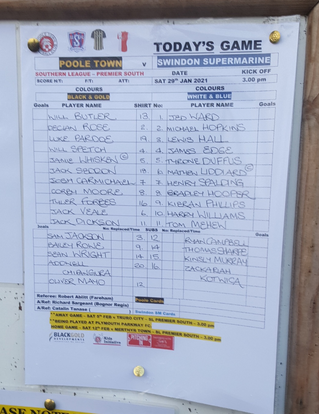 Poole Town FC were formed in 1890 with the merger of Poole Rovers and Poole Hornets and I remember them being a strong force in Non League Football in the 1960’s when their reputation for cup heroics went before them. They have been dogged with ground issues, Poole Stadium used by Speedway was lost to them, but have now settled into The Black Gold Stadium, Oakdale School, School Lane, Poole and in recent years have been pressing for promotion.