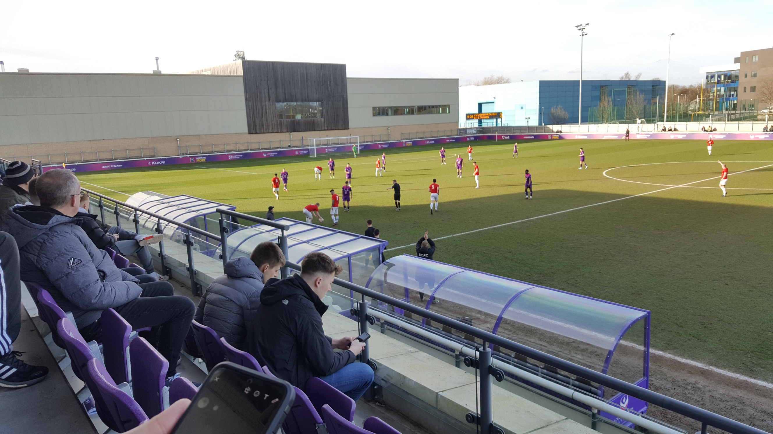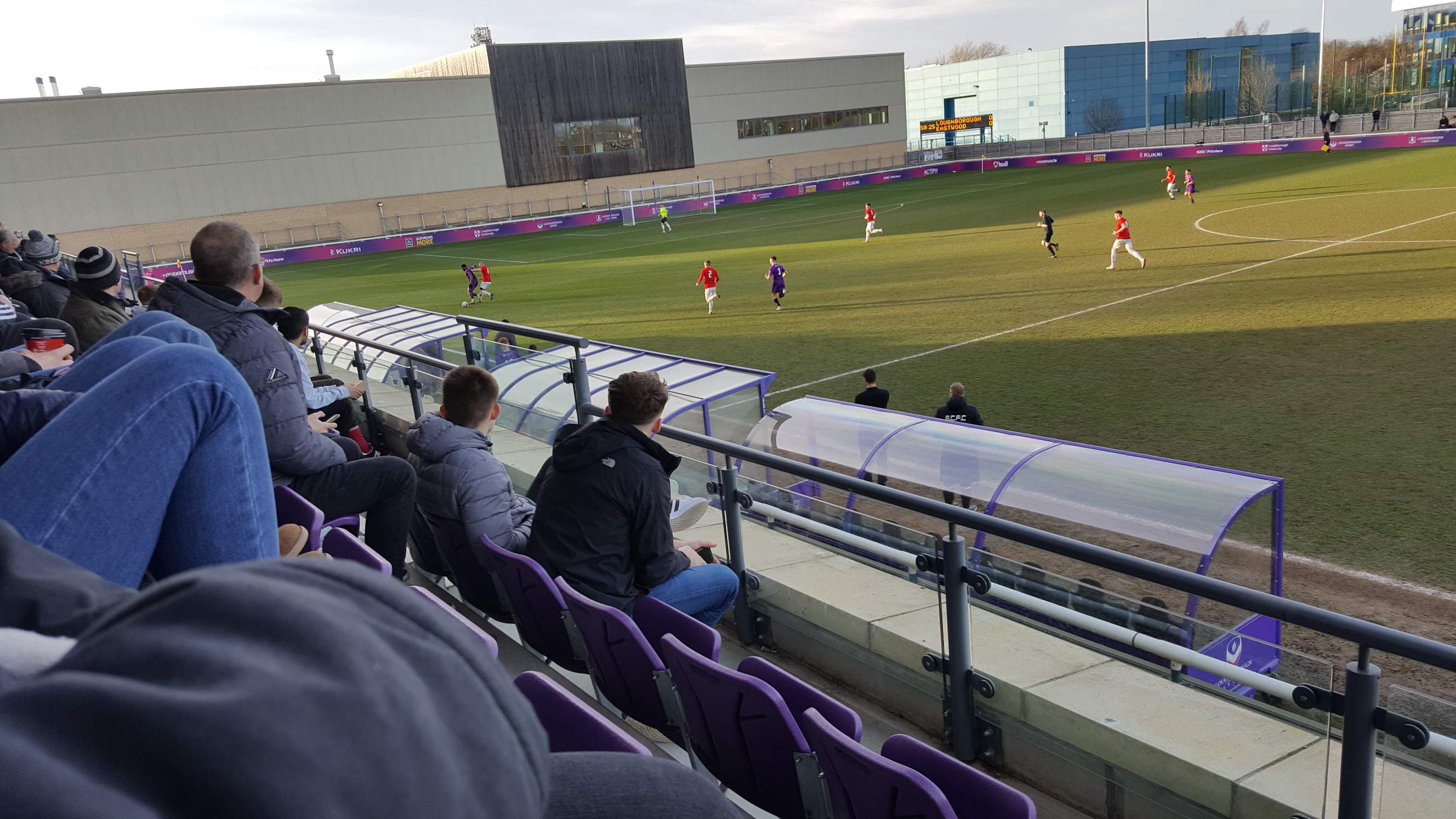 The University Stadium was opened in 2012 but still looks like it was last week. This is Non-league heaven with a beautiful stand down one side incorporating changing rooms, and a plush hospitality area for all up stairs where you enter the seats or look out on the pitch while having a drink or eating your pie. There is standing on three other side and to cater for the Quarter Final they are going to install a fans zone on the hard standing pitch behind the open side. There is an electronic score board and a perfectly flat pitch that is grass and looked after by a Wizard who has presented a lawn that would not be out of place for a bowls team.