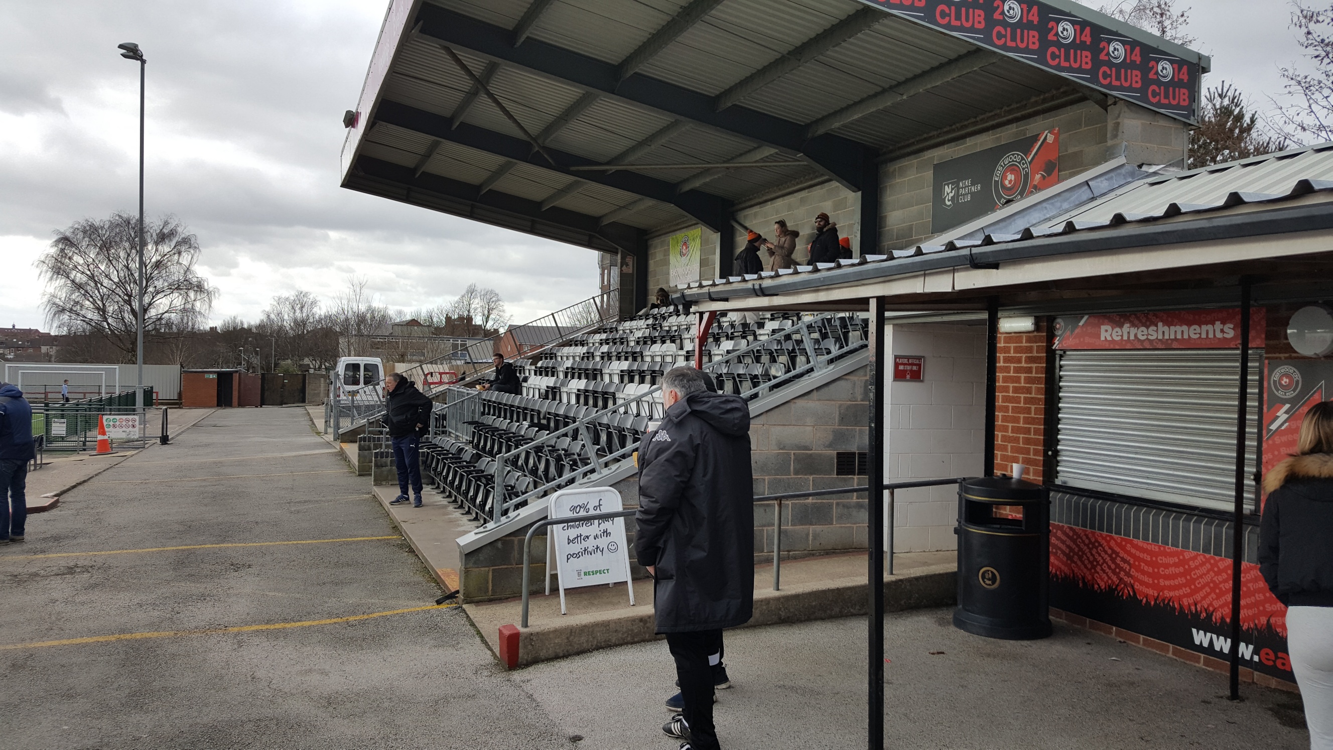 Easy parking, although it was nearly full, led to a short walk past a large park to the ground. As I expected this is a good facility for this level of football.