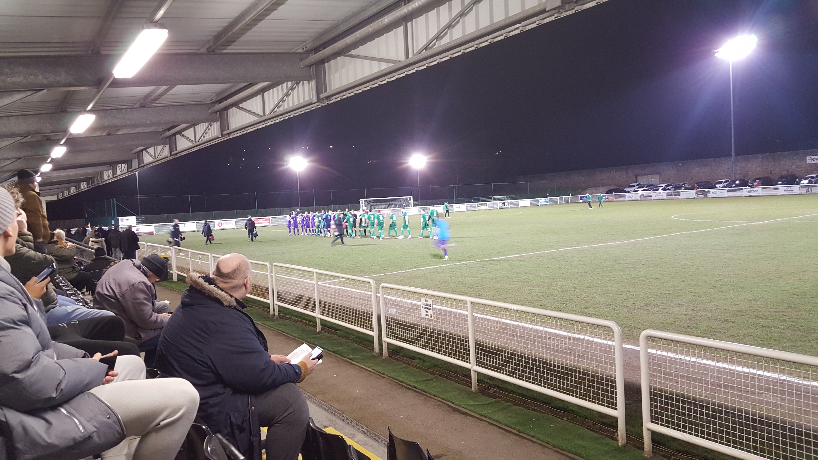 It was a pleasant evening of 12 degrees with a stillness in the air and very black skies that made the floodlights shine brightly. I was greeted by a friendly team at a table selling tickets and programs and there was a crowd of 168. Belper United’s biggest league crowd of the season.