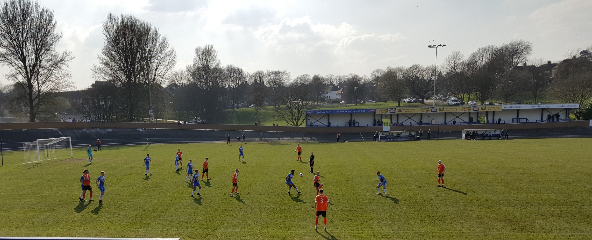 After 15 minutes I was wandering why the ball had spent so much time in the air with little effect. Newcastle did force 3 corners in a row exerting some pressure but the game soon reverted to kick and rush. Glossop did have the ball in the net on 34 minutes but is was ruled offside and they again came close 3 minutes later with a header.