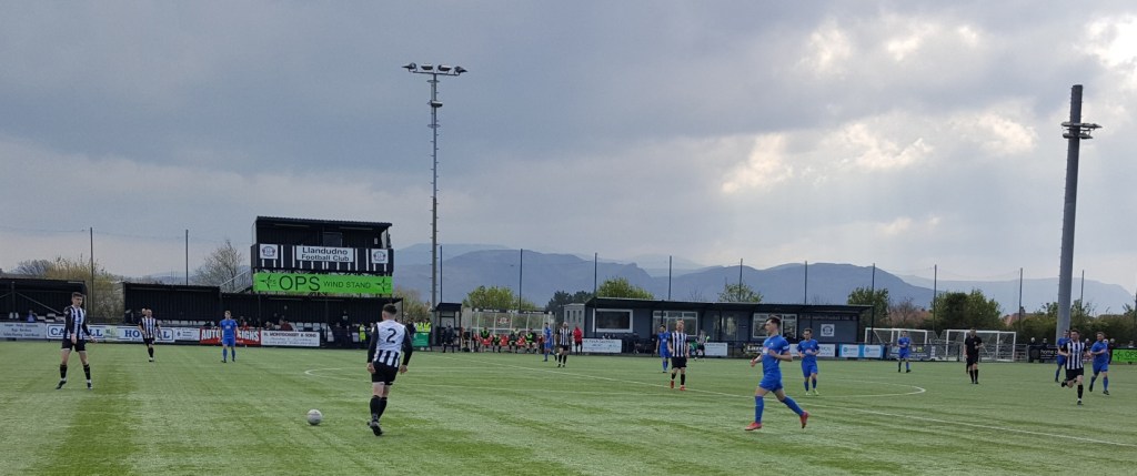 Llandudno F.C.’s ground was on the edge of an industrial estate behind the town centre and the game was against Llangefni in the Cymru North League which is the second tier of Welsh football. Only one team is promoted from the Cymru North League along with the winner of the Cymru South League. The game was the last of the season for both teams Langefni sitting near the bottom table and Llandudno in second place but with no chance of catching runaway leaders Airbus UK.
