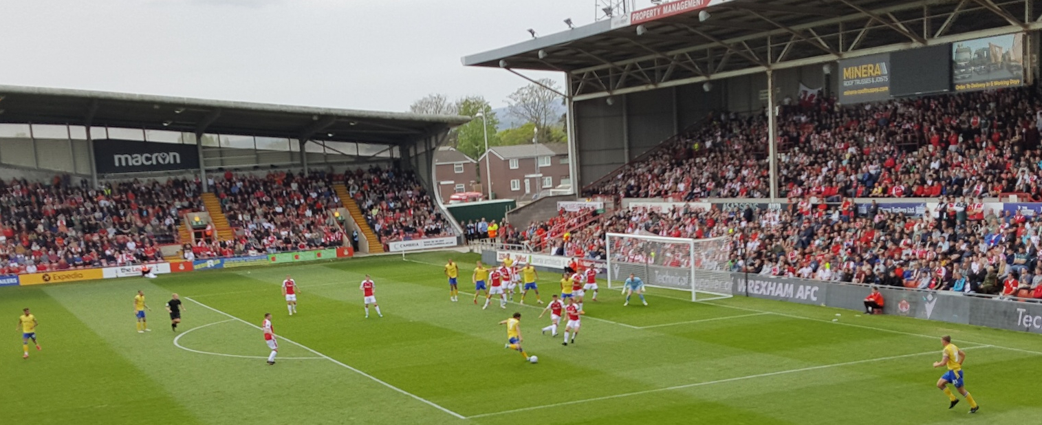 The Wrexham crowd came alive at the final whistle especially when they heard the news that Stockport had lost at home and were now only one point ahead of them in the automatic promotion spot. There is a lot more excitement to come in Wrexham’s last five games of the season with a home game to Stockport two games away. The 9269 fans went home happy including the 505 from Southend.