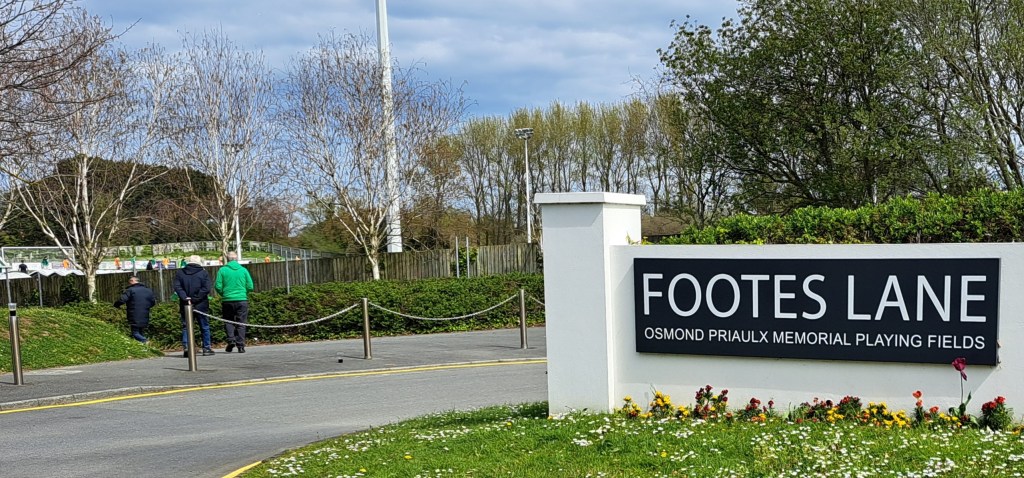 We arrived at the ground in glorious sunshine and parked in the local sixth form college.