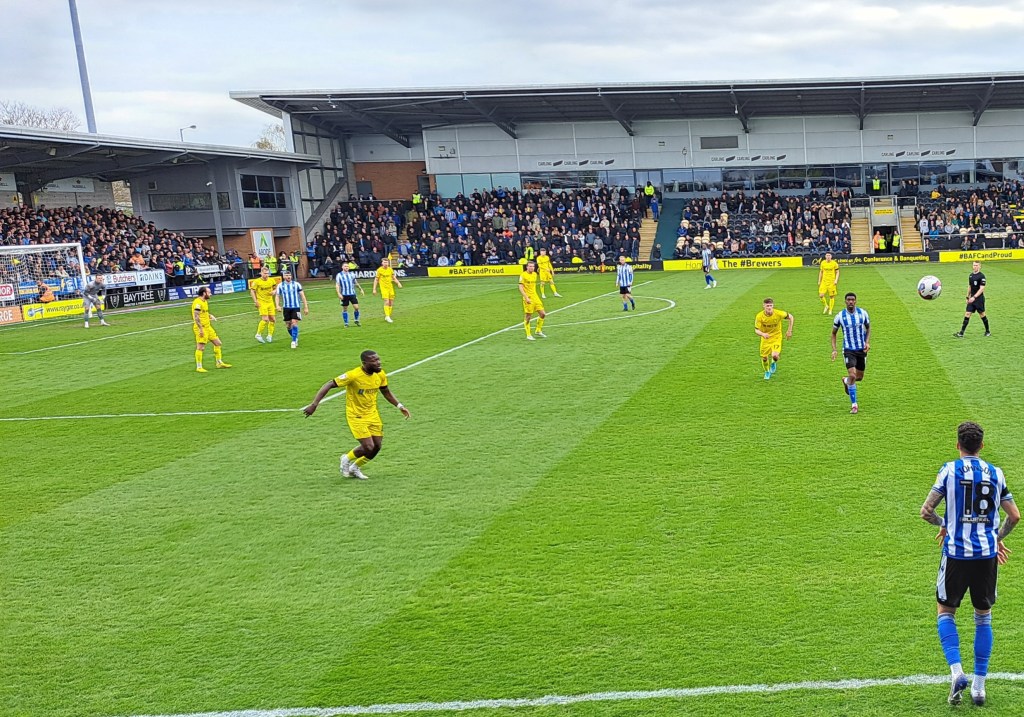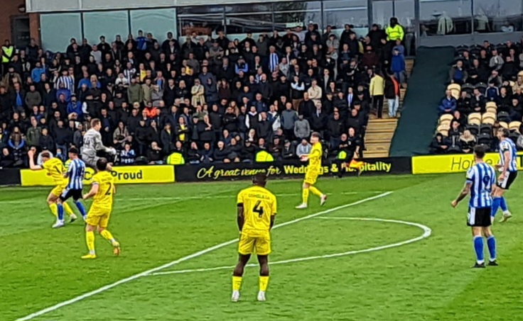 Wednesday fans stayed very quiet as the second half was started and even three changes early on didn’t help in fact they lost shape and their constant high balls into the Burton defence were dealt with easily. Burton fans continued to taunt the away contingent behind the goal and the away players as well.
