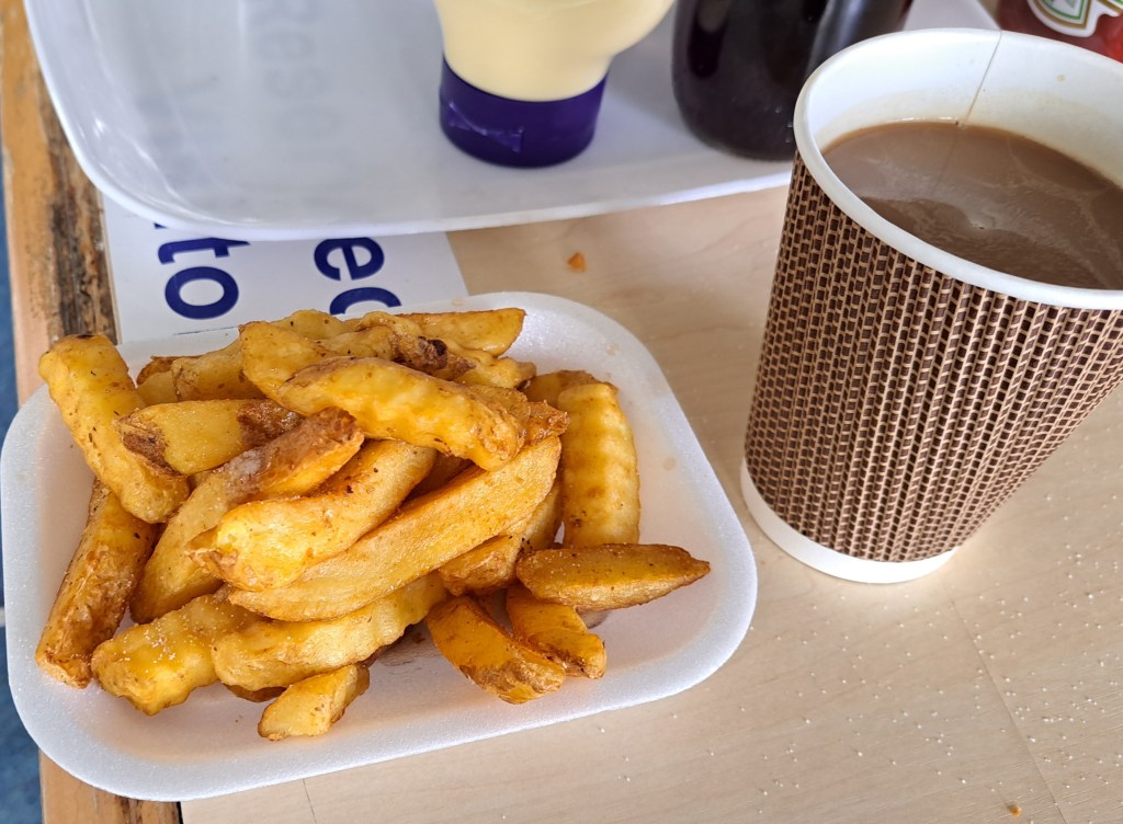 The chips were very tasty, medium hot but a bit soggy. If they would have been hot they would have been up there near the top of this years chip league, a score of 60.