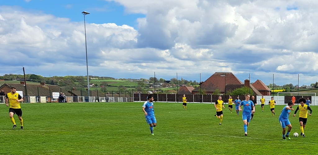 What struck immediately was there was no end of season blues on show here as both sets of players showed that they were pleased to be there and wanted a win. The crowd of about 70 were entertained but neither side bothered the respective goalkeepers. Fans either played football behind the goal, drank a few cans by the refreshment hut or chatted about the season just gone or the proposed changes that might be made to the league next season. The first half closed with ‘DSB’ having played the best more pressing football but with Pinxton coming closest to end the deadlock.