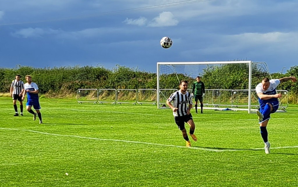 With 29 minutes of the second half gone Declan MacIlvoy’s free kick from the right again sailed over the goalkeeper and ended up in the net. The away side were deservedly in the lead dealing easily with Heacham’s Huff and Puff.