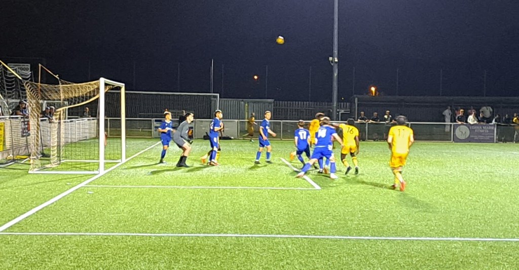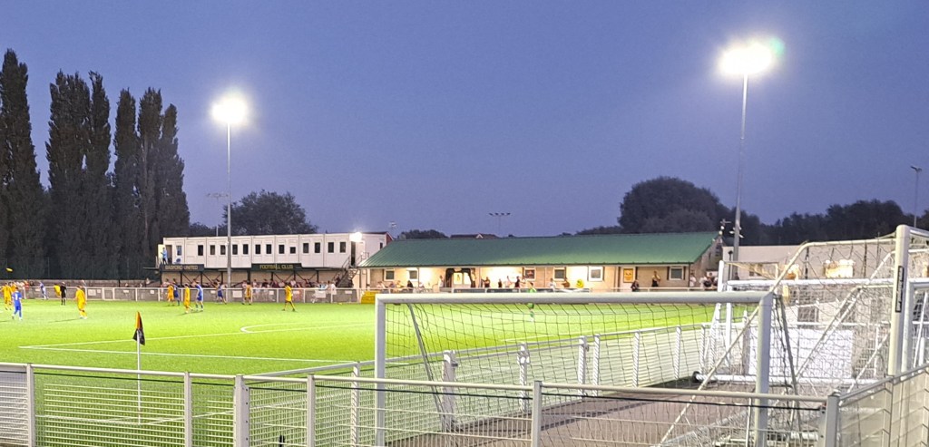 Gresley weathered the storm for the next 19 minutes but with Basford’s back four looking strong and their forwards skilfully and tricky. The floodlights came on early as it was dark by 20.00 pm, although we are having a good hot spell the signs are there that winter in on its way.