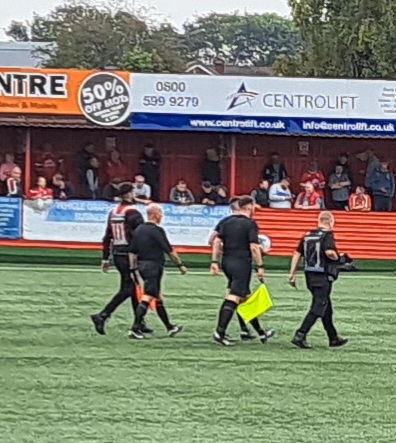 Half time came with Harborough hanging on to their lead and as the teams went off there was the unusual sight of two security guards walking off with the officials.