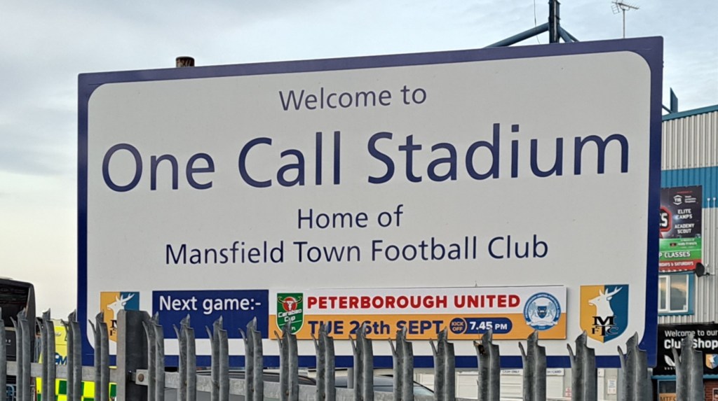 I decided to see an EFL Cup match and the £35 a ticket at Villa compared to £5 at Mansfield was a no brainer. I had not been to Mansfield Town’s ground for over 40 years but had driven past it many times.