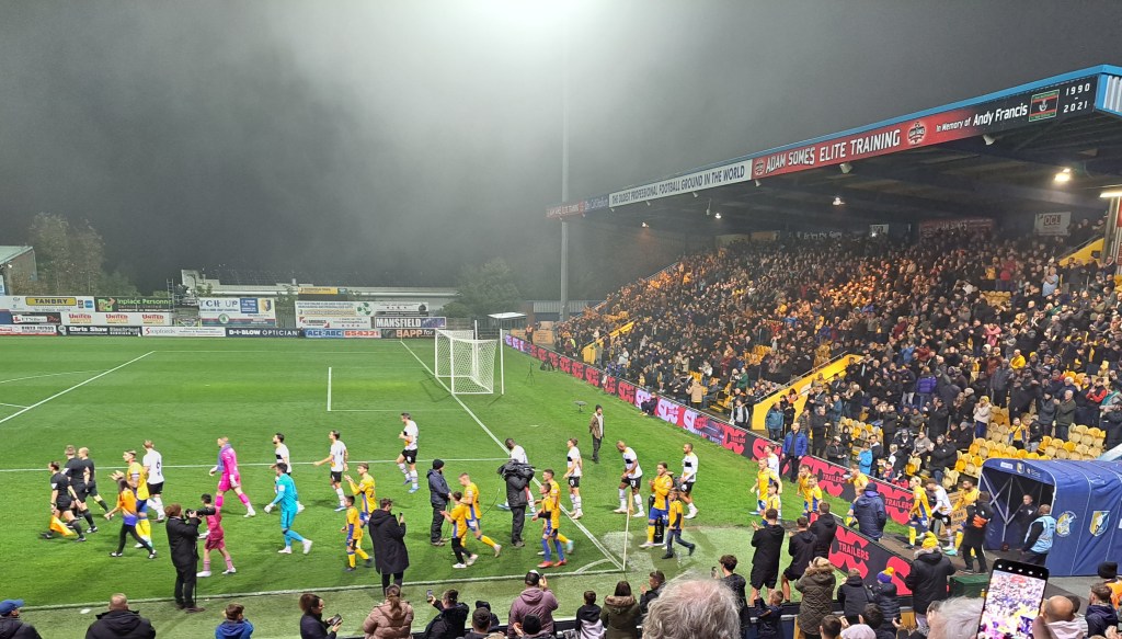 I journeyed again to Mansfield for their next game in the EFL cup home to Port Vale. To have achieved progress to the last 16 (Fourth Round) was a good achievement but they did not use this attainment as a cash cow opportunity but kept prices low, my ticket was £5. I looked at the cost of going to a similar round game at a Premier League club and costed it at £20 to become a member and a ticket for £52, wow. More of that in a later post but first the game.