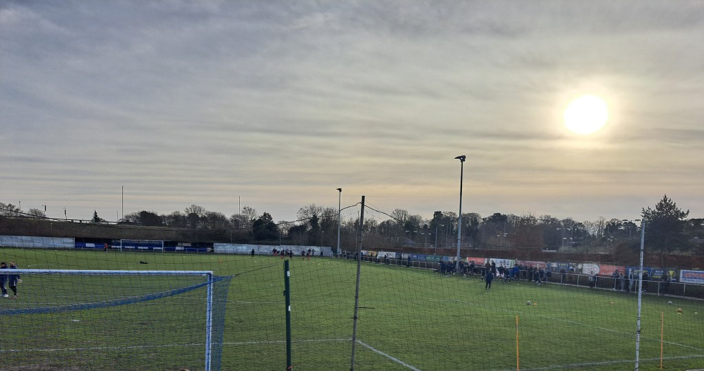 I had read that this was set to be the warmest Christmas on record but the 7 degrees would have felt colder if it hadn’t been for the 5 minute walk from where I had parked. It was dry with little wind and wispy clouds and the pitch looked a little worn with muddy goalmouths.