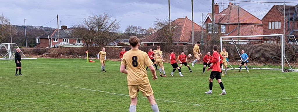 With Bennington kicking up hill it surprised me to see them dominate the start and they went ahead after 14 minutes when their number 4 was put through on the right, where he tapped in unopposed. Kirton tried to rally but were kept at bay only able to show any threat through individuals efforts.