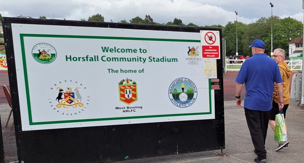 So I made my way to Bradford to watch Albion Sports play Trafford F.C. The M1 and M62 were quiet for a Friday night, but this is the holiday season. The Horsfall Community Stadium is 4 km southwest of Bradford City Centre and a venue I have visited before to see Bradford Park Avenue play. This year aswell well as sharing the ground with West Bowling Amateur Rugby League club, Albion Sports will also be playing their home games there. The Stadium was opened in 1931 as a running track and in 1996 the whole complex was upgraded to a synthetic running track and the centre was prepared for Bradford Park Avenue to play football.