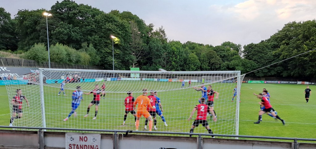 The game started competitively at speed and on 7 minutes a corner from the right was headed down by Louis Potts which the defence failed to clear and Louis Potts quickly reacted by slipping it into the bottom right hand corner to give Clitheroe the lead.