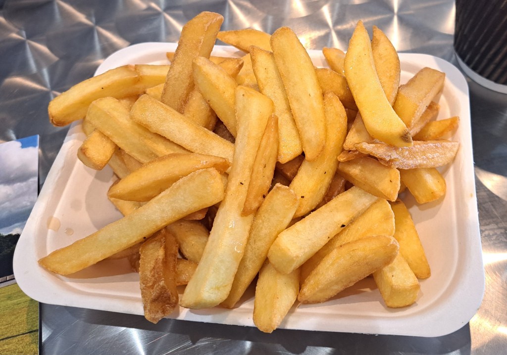 The chips were great, cooked individually, hot, golden, crispy outside, good texture inside, tasty and no greasy after taste A score of 67.