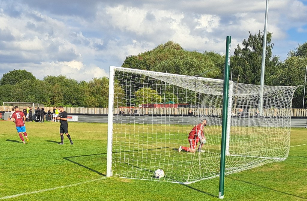 Deeping’s lead looked to have been doubled after 10 minutes from the re-start when a long throw was taken down and hooked in. Celebrations were short lived as no one had seen the linesman’s flag for offside.