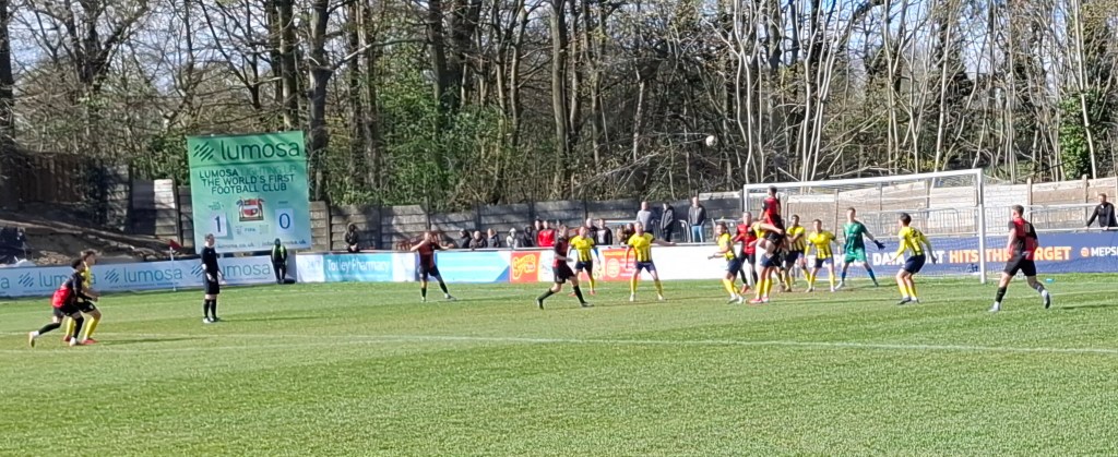 Sheffield had the first clear chances of the game when Alex Harwick beat the offside trap but didn’t have the composure to beat the goalkeeper. He put this behind him when with 19 minutes gone a great Cross from Luke Mangham was crispy headed home. A fan behind me said that the goal made Hardwick the top goal scorer in the league for the season.