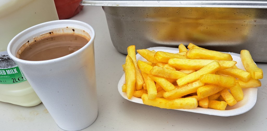 Mansfield 58 Only ate half, greasy, why chips in away end not main stand?