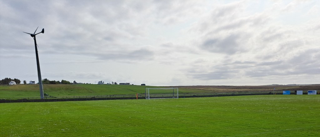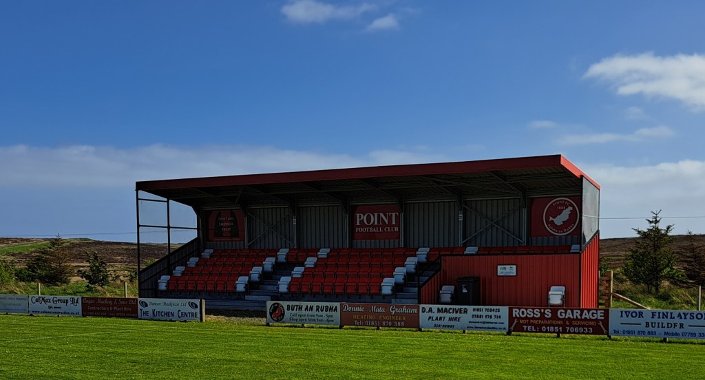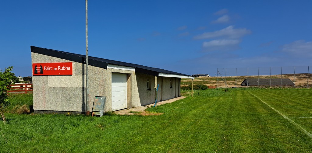 My trip to the Outer Hebrides found that football is alive and well in this outpost. I wrote about the iconic pitch in Eriksay and the Jock Stein Cup Final in Stornaway and on my travels saw some really good community football grounds. Scotland like England are developing a good pyramid system although both in my view need to make it easier for more clubs to go up into the professional ranks each year. The Hebrides are served by two Leagues the Uist and Barra Amateur Football League with 6 teams and the Lewis and Harris Football League with 9 teams. They all come together for the Coop Cup and compete in the Highland Amateur Cup. For a group of islands with a population of just less than 30000 this is some feat when you consider the logistics and distance (130 miles from the Southern to Northern point including two ferries). The competition is healthy amongst the community clubs with the facilities often reflecting a community hub.