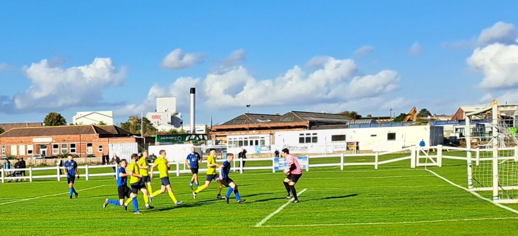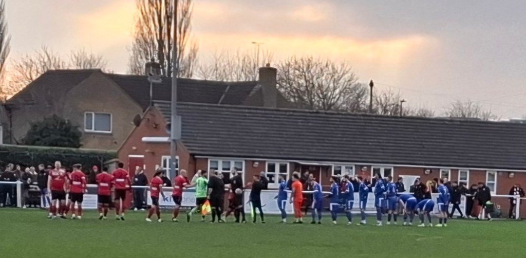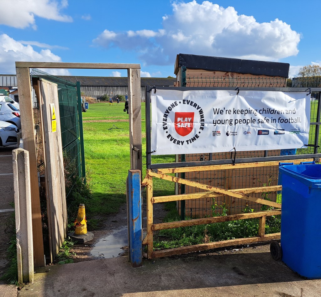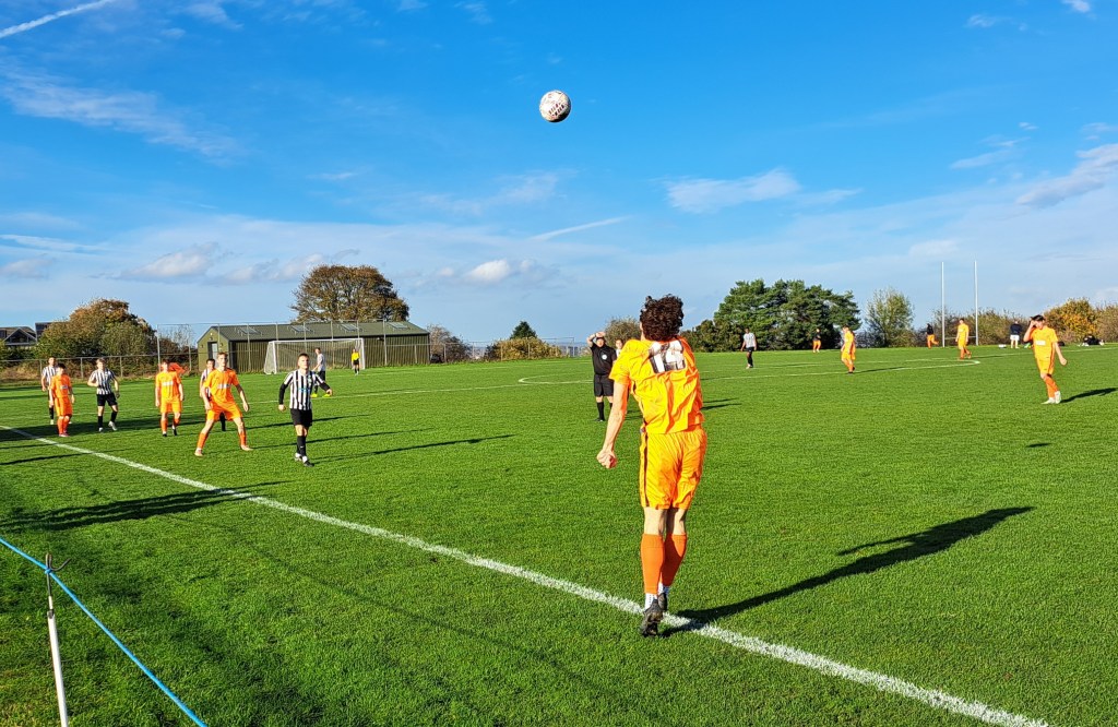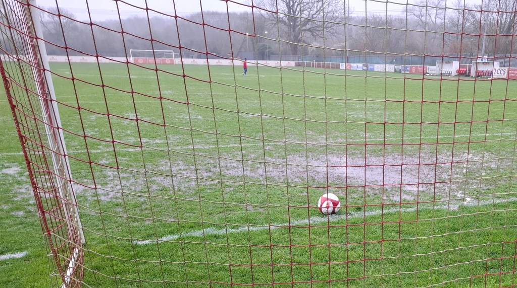 It was a very sunny afternoon with clear skies and the temperature rising above 15 degrees. The all grass pitch which famously slopes from one end to the other looked in great condition apart from some sanding in the goals.
