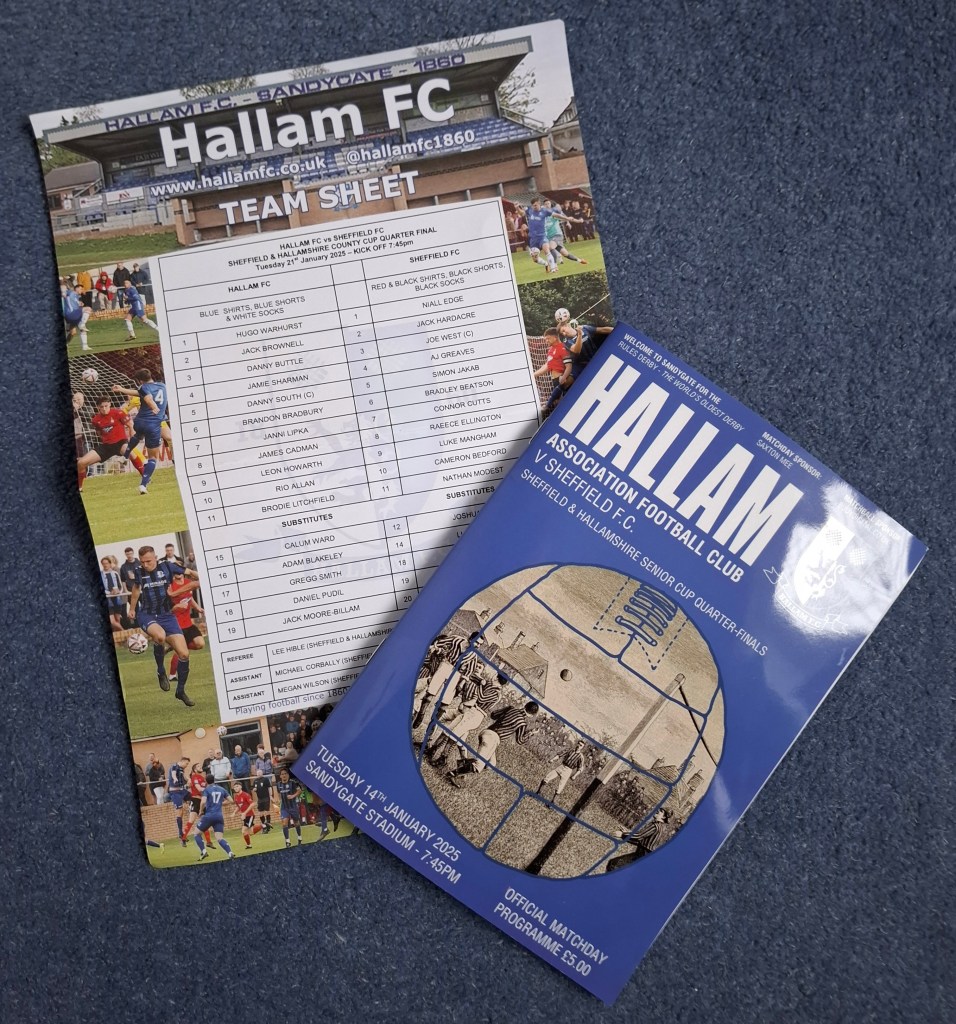 There is now temporary cover behind each goal, and at one end, this replaces one of the iconic oak trees that became diseased and cut down after offending the Conference League. The glossy programme was only on sale at the club shop and wouldn’t have been found if we hadn’t done a tour of the ground. It’s pleasantly different to the old foolscap folded sheet with the teams printed in the middle. I also seem to remember that the club was known as ‘City’ and not ‘Saints’.