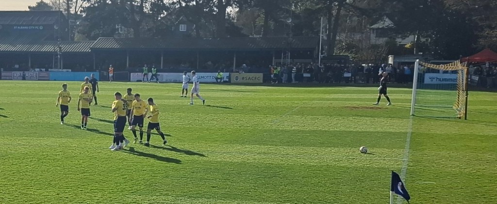 St Albans are fighting a relegation battle which at one point looked impossible until Ian Culverhouse and Paul Bastock (a hero in these parts, who played nearly 300 games for ‘The Saints’ in his world record club appearances of 1286) took over, but now looks like they may only just survive if results go their way. The club is going through an administrative management change that the programme says will free up the owners to pursue their dream to relocate to a new stadium. The size that the city has now grown to, approaching 80000, with the continued support, could in the future maintain an EFL club. I will be sad to see it go, but the new planning laws may finally be the catalyst for change.