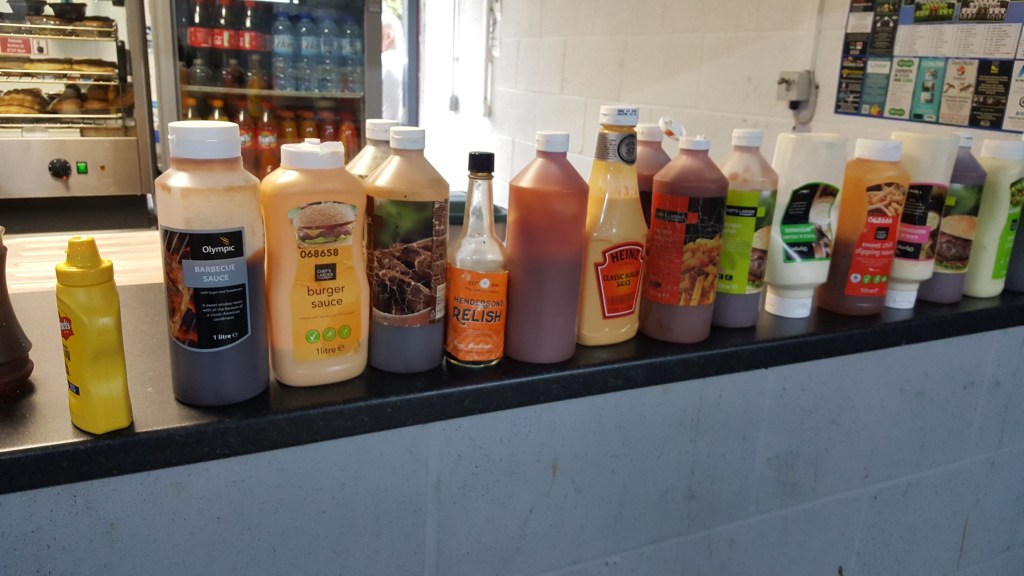My favourite football foods in the last 3 years have been at the kiosk at Crook Town (Only food and Sauces), the chips at Shirebrook Town (Winners of my chip League two years running), the Chip Bar at FC United (Mr Chips), the display of sauces at Halifax and hot pork pie and mushy peas at Pennistone Church. It’s not just about the football.