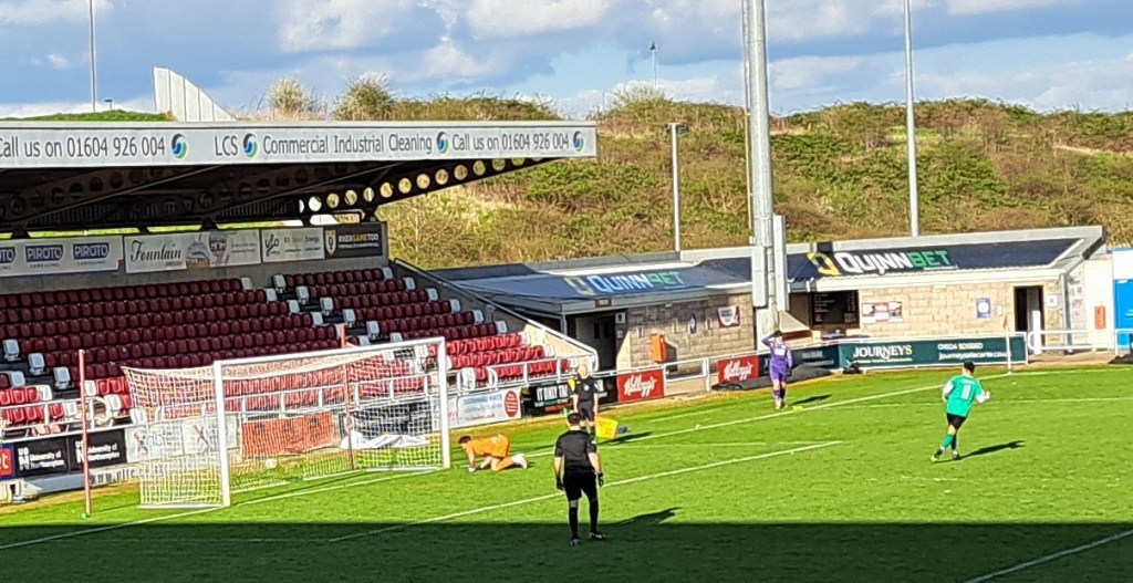 It was no surprise that after only 9 , Jay Rollins, surged past the defence to cross a ball that was met by Liam Hughes who guided it into the net via a bounce off the turf.