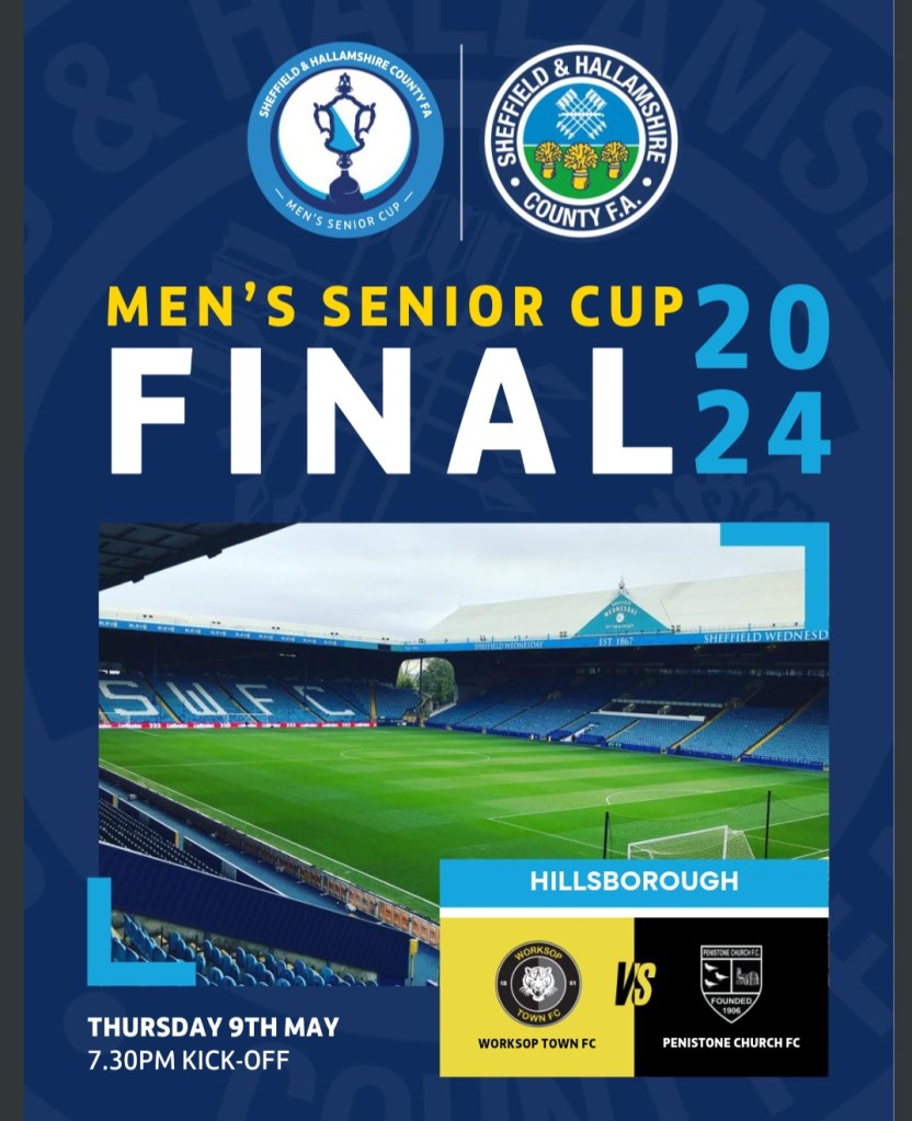 With most Non-League football matches complete, apart from a few stragglers due to the many postponements from our wet and weary winter, I was drawn to Hillsborough (home of Sheffield Wednesday) to see The Sheffield and Hallamshire County F.A. Men’s Senior Cup Final between Worksop Town and Penistone Church.