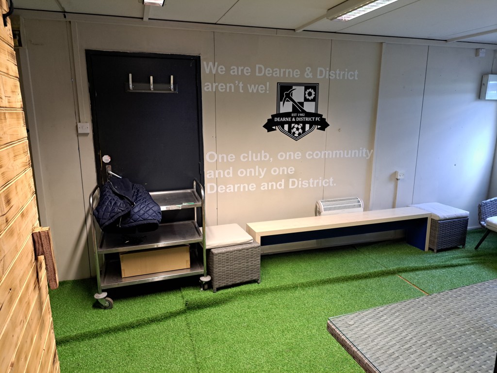 Dearne & Districts ground is in Goldthorpe in what was the edge of town but is getting surrounded by a growing large housing estate which is one of the reasons they are preparing to move to the Welfare ground where lights are being installed ready for a move up the non-league pyramid structure.