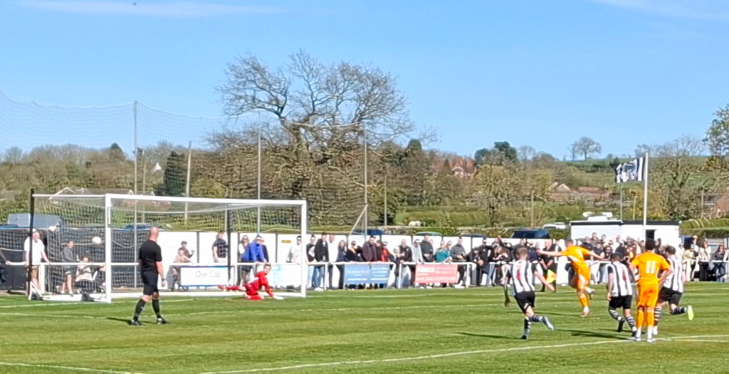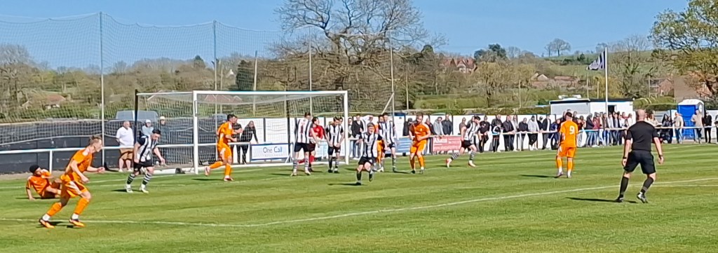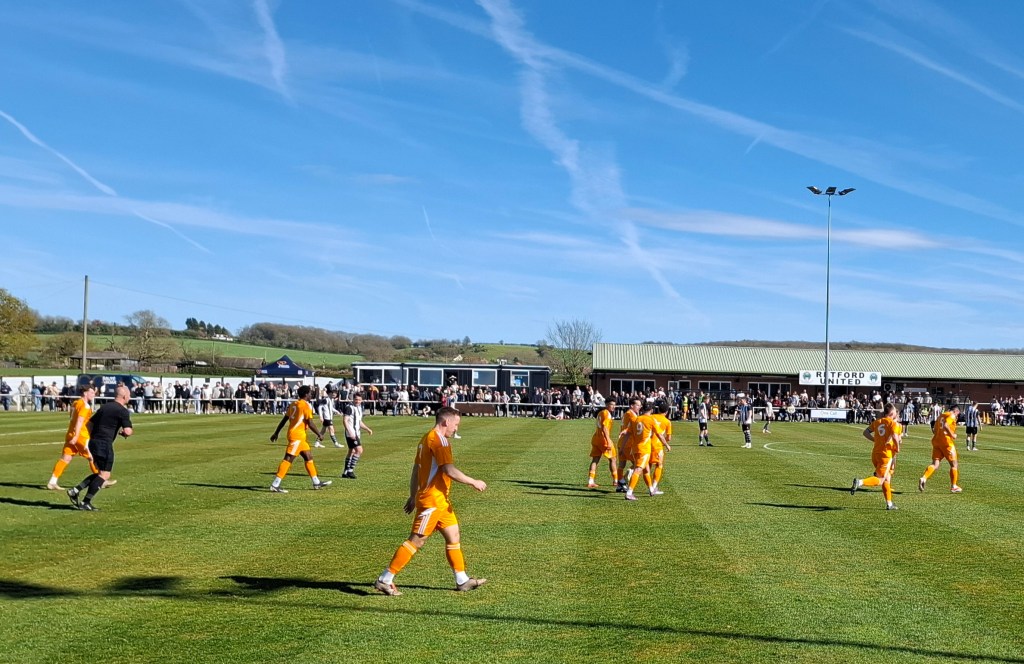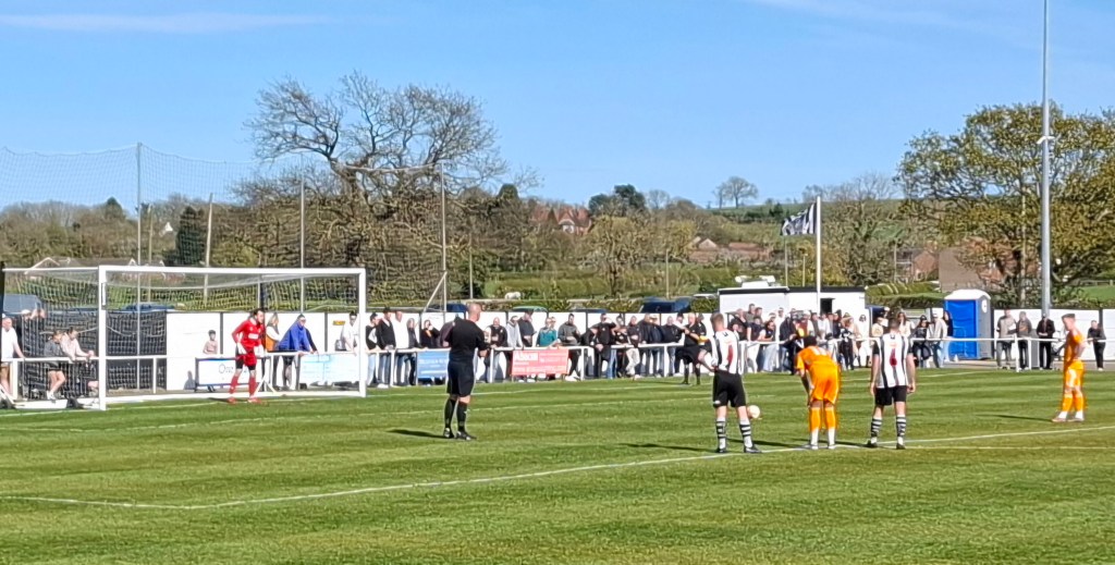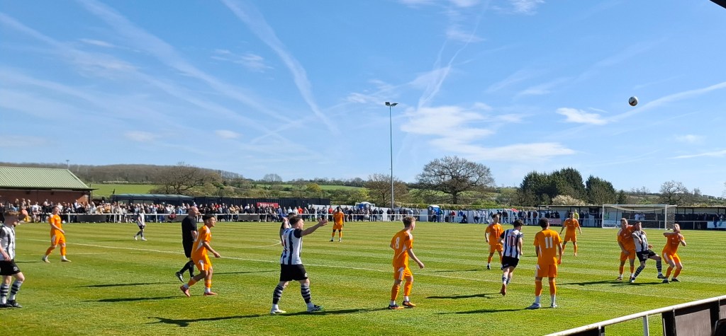 It was a beautiful clear day with a vivid blue sky and little wind. Still being at the beginning of April it was only 16.5 degrees. United’s ground has a character and history and is well kept and tidy. Despite it being nearly the end of the season the flat grass pitch still had a lot of cover.