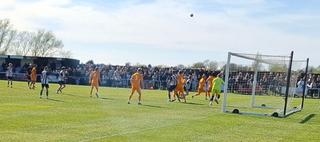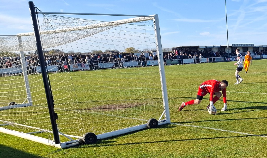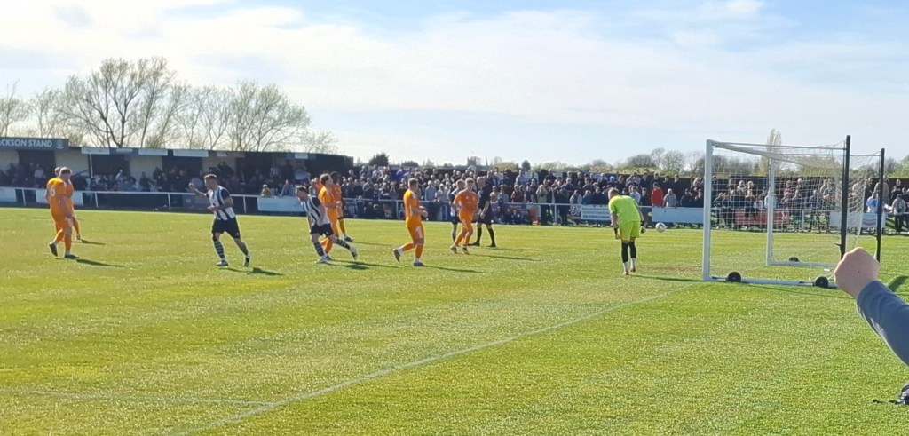 With half time just a whistle away, Woodward in goal for the home side kept a shot out by a fully stretched dive to the right and parried the ball behind for a corner. Retford FC could have been out of sight but at half time it was anyone’s game.