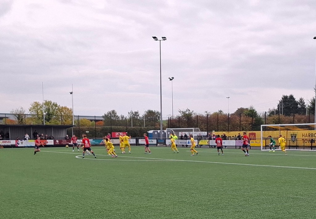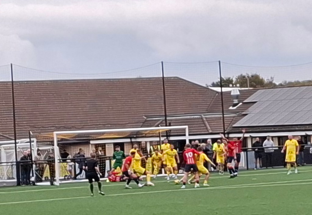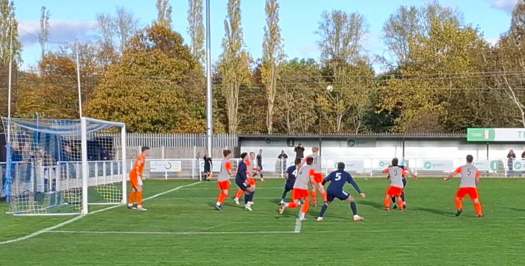 The away team responded with pressure, but apart from a fine save by the home goalkeeper, at the base of his right hand post in the last minutes, didn’t come close enough to score.