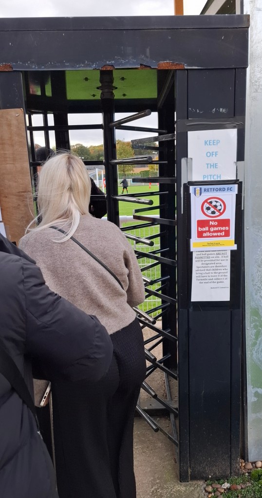 My trip to South East Nottingham revealed a flat area by the river Trent where there were a group of football pitches that are used by all ages, reflecting this teams roots in youth football. A large car park greets you, with an overflow if needed, next to a large dressing room and club house block. This is a few yards from the entrance to the ground which reveals a flat pitch with good grass cover that had some wear in the goalmouths.